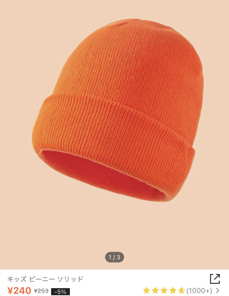 生地がしっかりめの子供のニット帽は、1個の値段がなんと210円でめちゃくちゃ安い!