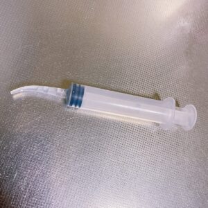 ここにカスが入ってちゃんと取り切れないとまた炎症を起こしてしまうので、しばらくは毎食後にシリンジで洗います。